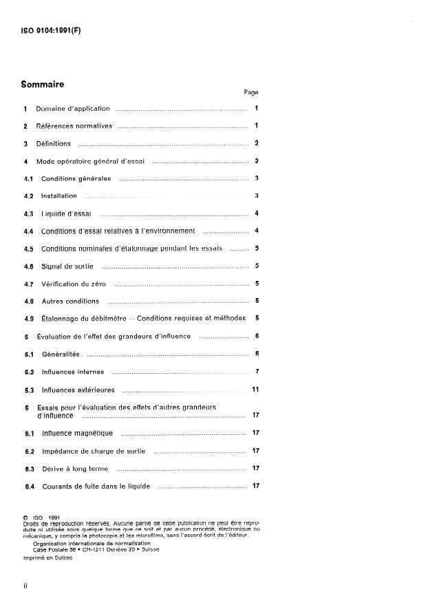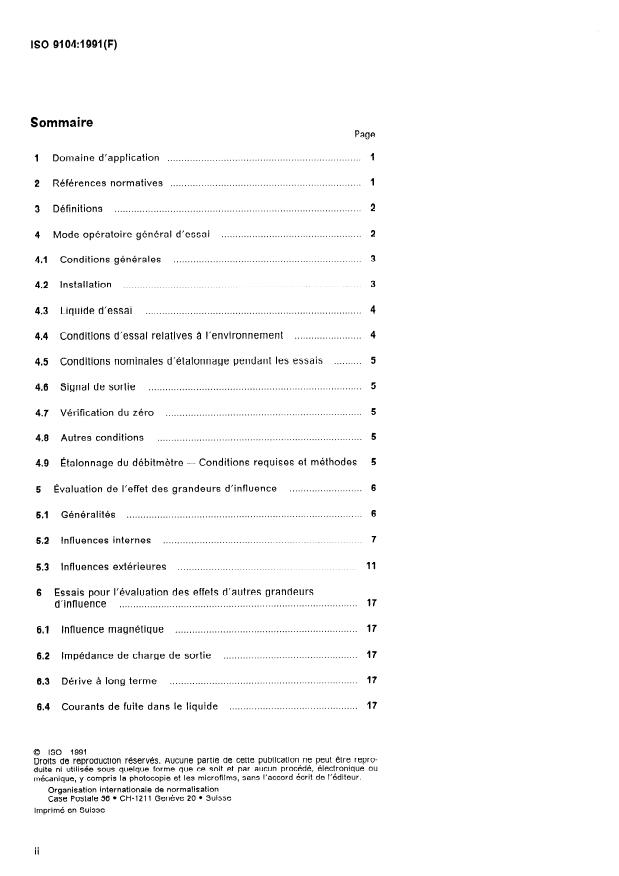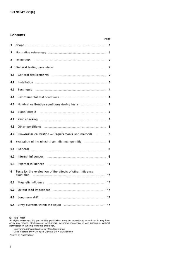 ISO 9104:1991 is a standard published by the International Organization for Standardization (ISO). Its full title is "Measurement of fluid flow in closed conduits — Methods of evaluating the performance of electromagnetic flow-meters for liquids". This standard covers: The methods specified are intended for use by manufacturers to determine the performance of their products and by users to verify manufacturer's performance specifications. The test conditions represent those which commonly arise during use. The values specified herein should be used where no other values are specified by the manufacturer. ISO 9104 applies to the evaluating the performance characteristics when the flow-meter is subjected to identified influence quantities and only to electromagnetic flow-meters.