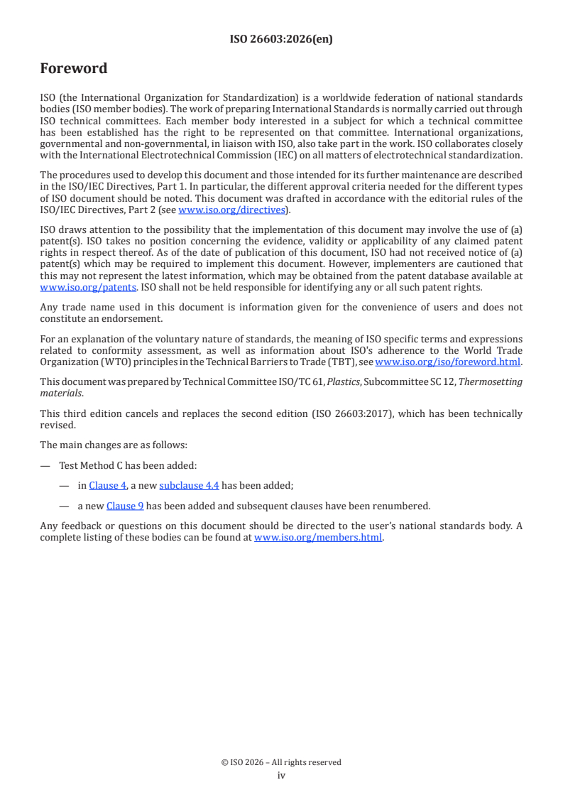 ISO 26603:2026 is classified under the following ICS (International Classification for Standards) categories: 83.080.10 - Thermosetting materials. The ICS classification helps identify the subject area and facilitates finding related standards.