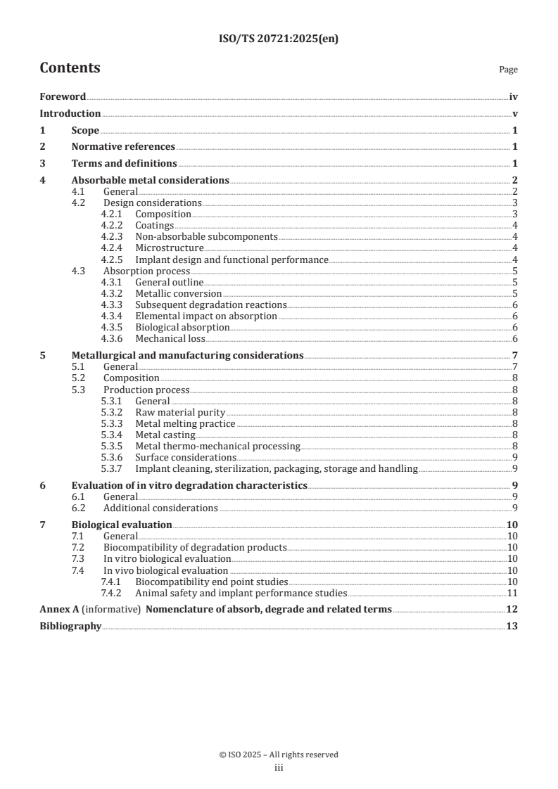 - Scope limits: does not apply to non‑absorbable or non‑metallic components (e.g., polymeric coatings, drugs) used with absorbable metals; application‑specific considerations must be addressed by relevant standards.