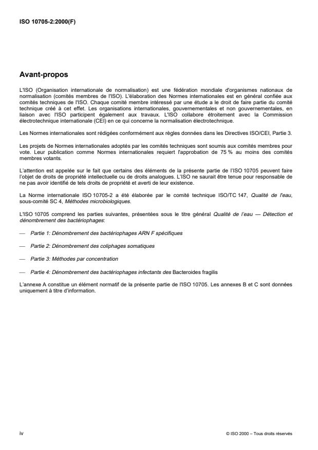 ISO 10705-2:2000 - Qualité de l'eau -- Détection et dénombrement des bactériophages