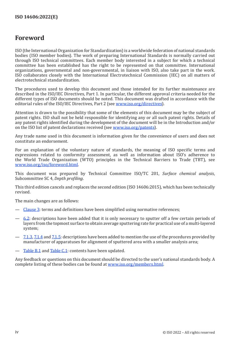 Keywords: ISO 14606:2022, sputter depth profiling, surface chemical analysis, depth resolution, reference materials, AES, XPS, SIMS, ion sputtering.