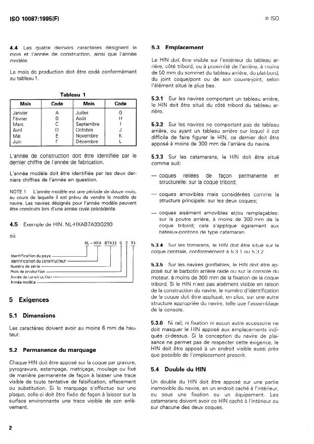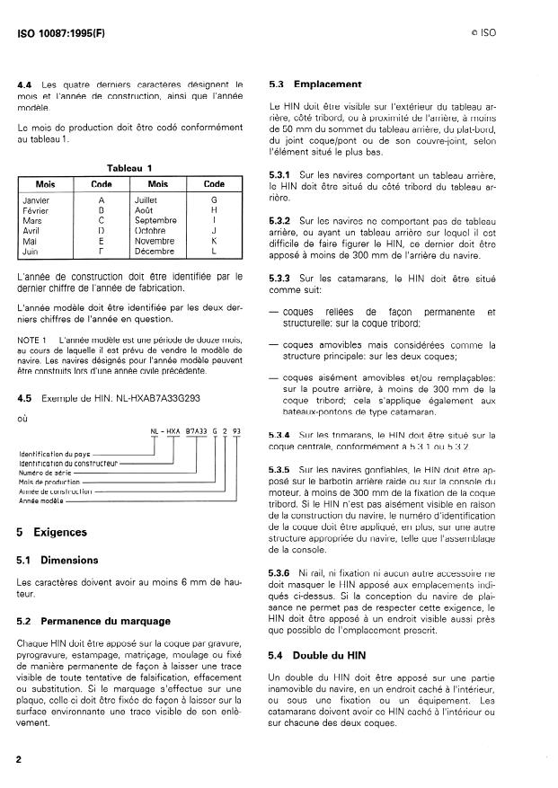 ISO 10087:1995 - Navires de plaisance -- Identification des coques -- Systeme de codage