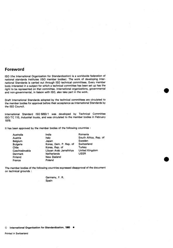 ISO 5053-1:1980 is a standard published by the International Organization for Standardization (ISO). Its full title is "Powered industrial trucks — Terminology — Part 1: Classification and nomenclature". This standard covers: Powered industrial trucks — Terminology — Part 1: Classification and nomenclature
