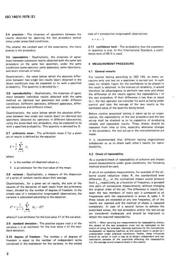 ISO 140-2:1978 is a standard published by the International Organization for Standardization (ISO). Its full title is "Acoustics — Measurement of sound insulation in buildings and of building elements — Part 2: Statement of precision requirements". This standard covers: Acoustics — Measurement of sound insulation in buildings and of building elements — Part 2: Statement of precision requirements