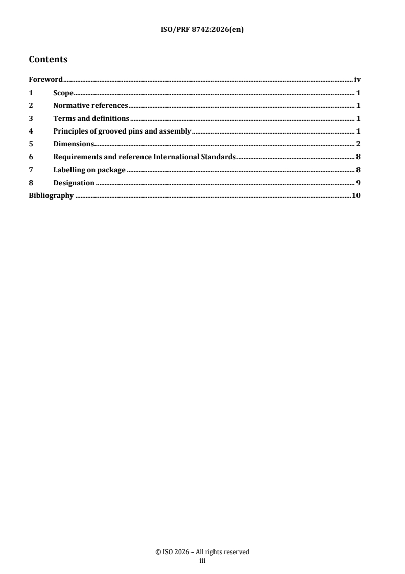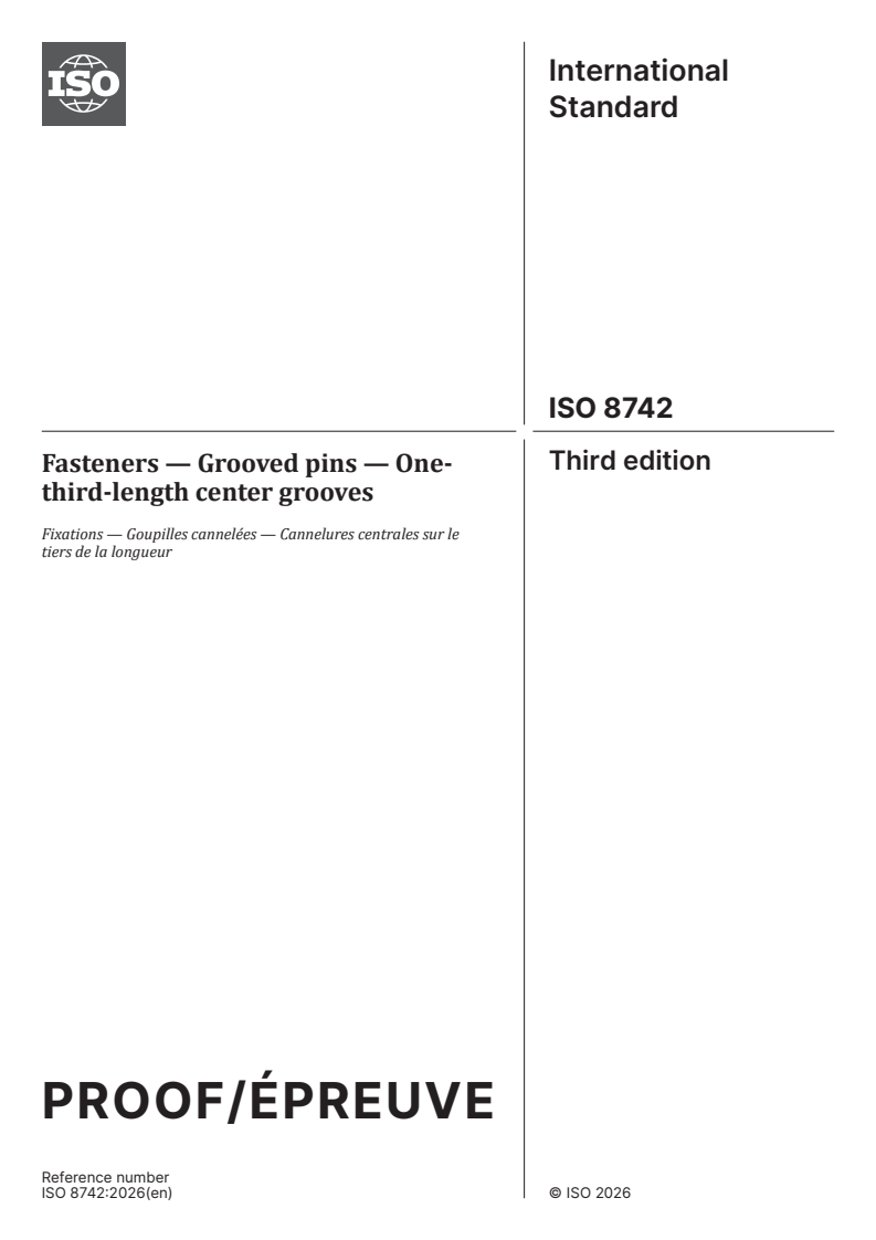 ISO/PRF 8742 - Fasteners — Grooved pins — One-third-length center grooves Released:5. 02. 2026