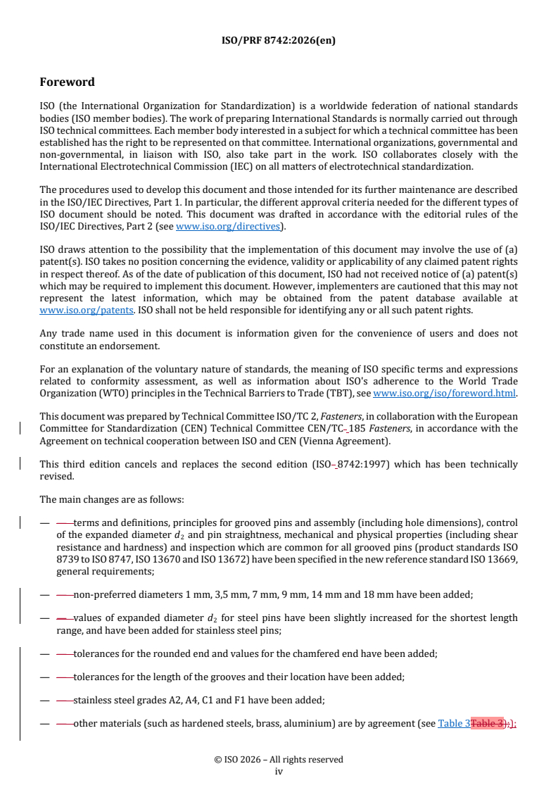 REDLINE ISO/PRF 8742 - Fasteners — Grooved pins — One-third-length center grooves Released:5. 02. 2026