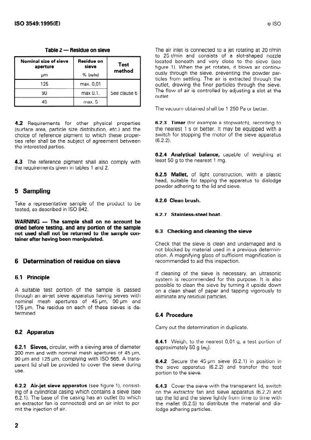 ISO 3549:1995 is a standard published by the International Organization for Standardization (ISO). Its full title is "Zinc dust pigments for paints — Specifications and test methods". This standard covers: Specifies the requirements and corresponding test methods for zinc dust pigments suitable for use in protective coatings. Replaces the first edition which has been technically revised.