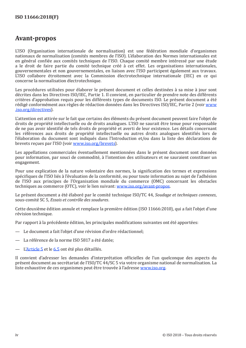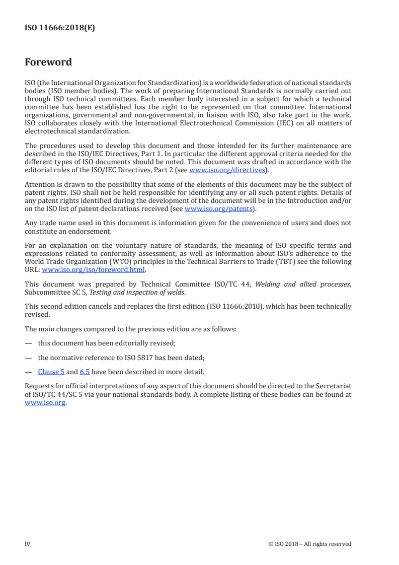 ISO 11666:2018 - Essais non destructifs des assemblages soudés — Contrôle par ultrasons — Niveaux d'acceptation Released:2/1/2018