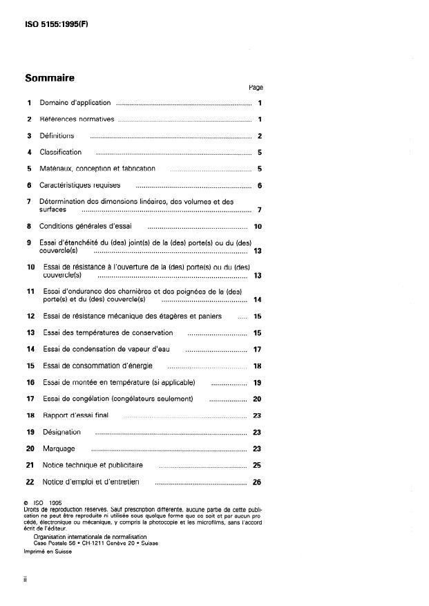 La présente Norme internationale prescrit les caractéristiques essentielles des conservateurs de denrées congelées et des congélateurs à usage ménager, qui sont entièrement assemblés en usine ainsi que les méthodes d'essai pour la vérification de ces caractéristiques. Elle ne s'applique pas aux compartiments à basse température («une étoile», «deux étoiles» et «trois étoiles»), qui font l'objet de l'ISO 7371, ou aux compartiments congélateurs des réfrigérateurs ménagers, qui font l'objet de l'ISO 8187. Elle ne traite pas des caractéristiques de réfrigération et des essais ou des définitions particulières aux appareils à air pulsé, qui font l'objet de l'ISO 8561. Les essais décrits dans la présente Norme internationale sont des essais types. Lorsque l'on voudra vérifier les performances d'un congélateur d'un type donné en liaison avec la présente Norme internationale, tous les essais décrits devront en principe être appliqués à un seul et même appareil. Ces essais peuvent aussi être effectués séparément pour l'étude d'une caractéristique particulière. Lorsque aucune méthode d'essai n'est prescrite, l'exigence particulière concernée est considérée comme une recommandation. Les exigences de sécurité électrique et mécanique applicables aux conservateurs de denrées congelées et aux congélateurs à usage ménager font l'objet de la CEI 335-2-24. Les exigences complémentaires de sécurité applicables aux équipements 337 mécaniques frigorifiques des conservateurs de denrées congelées et aux congélateurs à usage ménager sont données dans l'ISO 5149. Les exigences de sécurité applicables à l'équipement de chauffage au gaz et par combustible liquide des appareils à absorption feront l'objet d'une Norme internationale ultérieure.