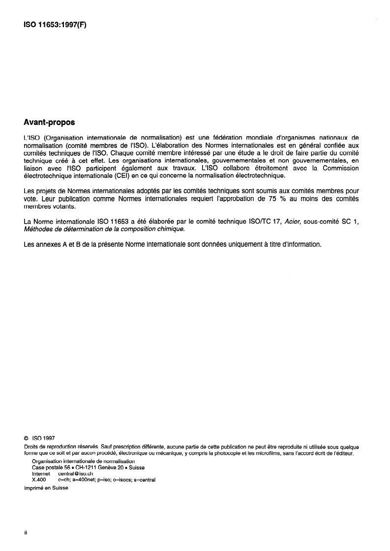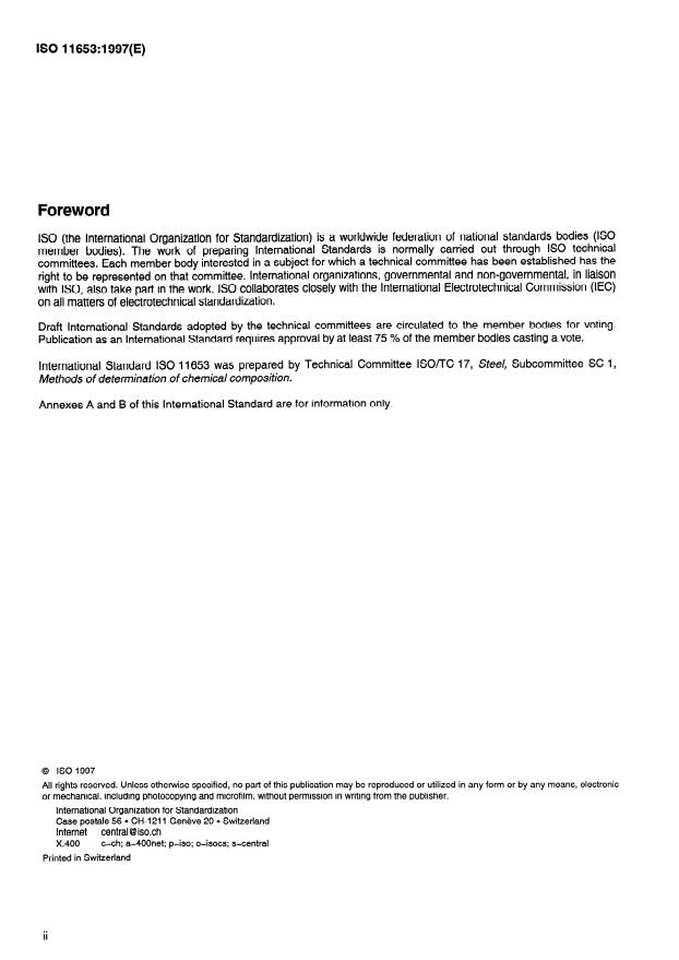 International Standard IS0 11653 was prepared by Technical Committee lSO/TC 17, Steel, Subcommittee SC 1,