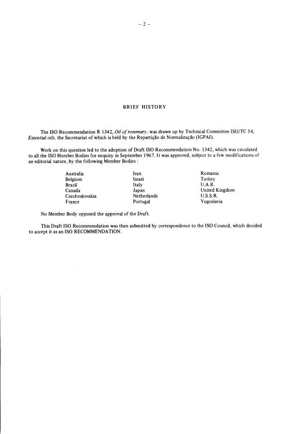 The IS0 Recommendation R 1342, Oil of rosemary, was drawn up by Technical Committee ISO/TC 54,