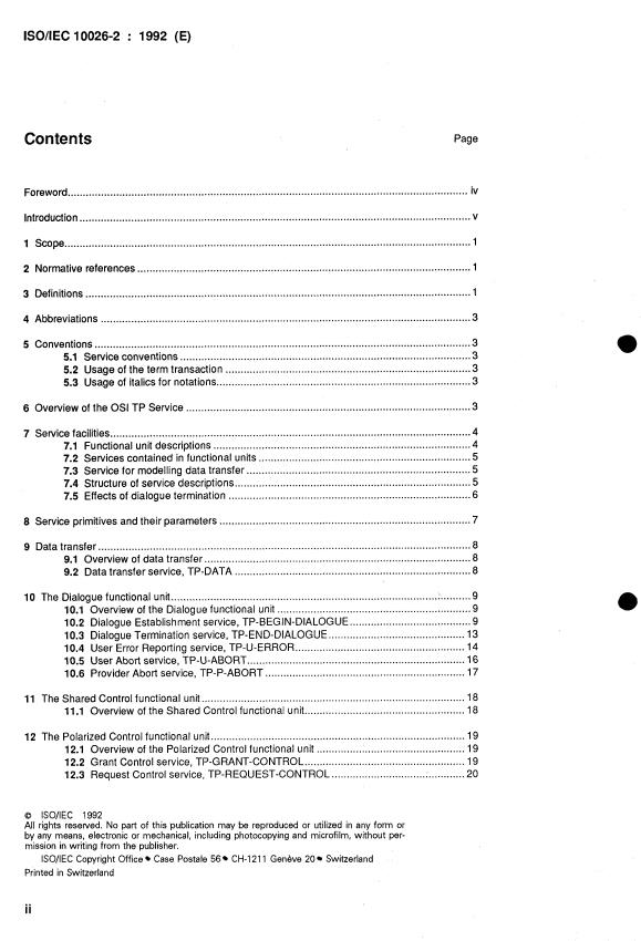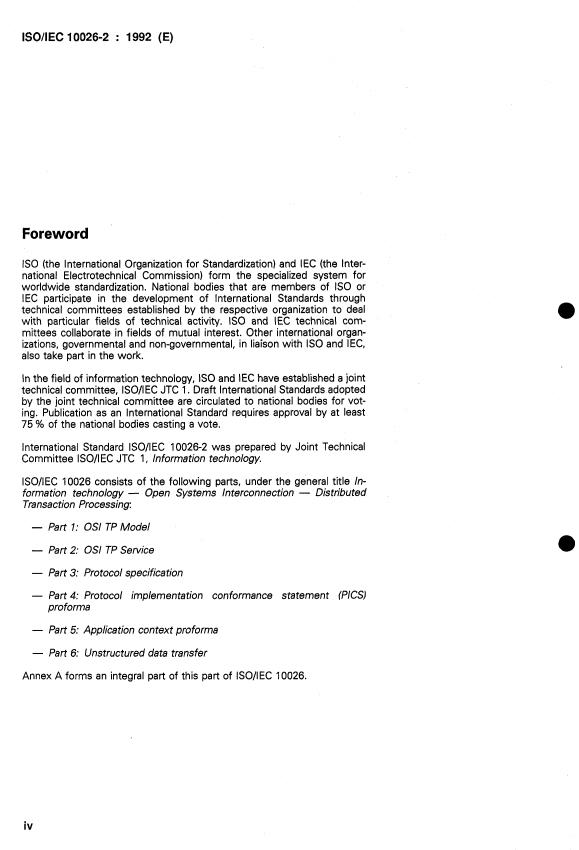 ISO/IEC 10026-2:1992 is a standard published by the International Organization for Standardization (ISO). Its full title is "Information technology — Open Systems Interconnection — Distributed Transaction Processing — Part 2: OSI TP Service". This standard covers: Information technology — Open Systems Interconnection — Distributed Transaction Processing — Part 2: OSI TP Service