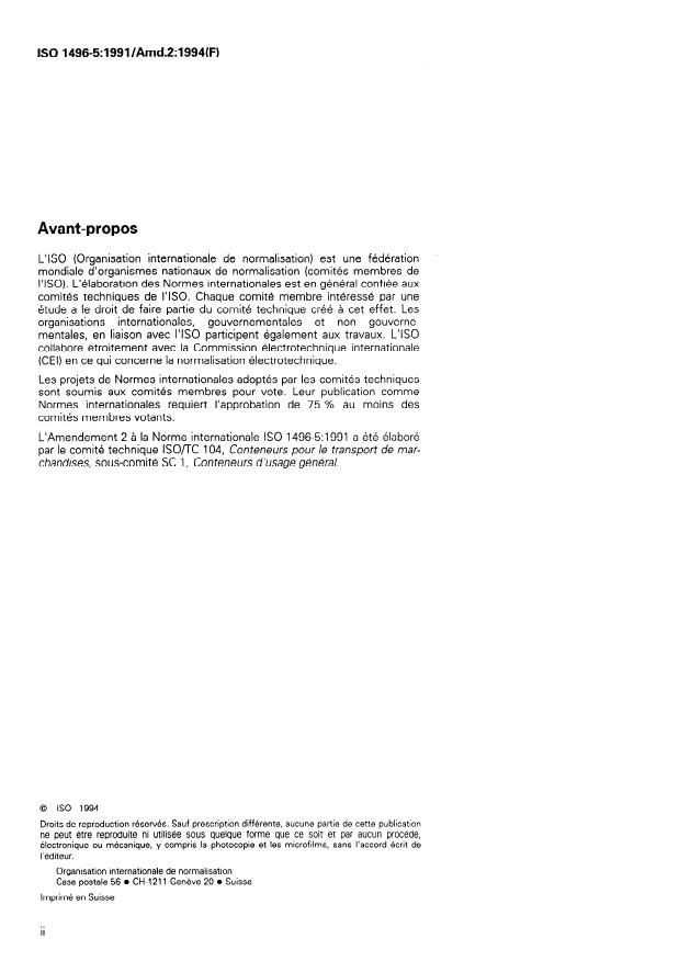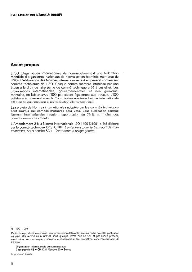 L’Amendement 2 à la Norme internationale ISO 1496-5:1991 a été élaboré