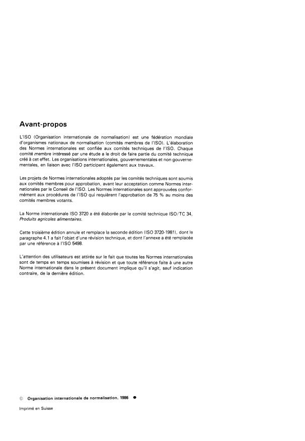 La Norme internationale ISO 3720 a été élaborée par le comité technique ISO/TC 34,