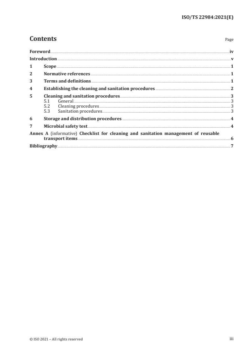 ISO/TS 22984:2021 - Transport packaging — Cleaning and sanitation methods of reusable transport items for distribution purpose Released:12/16/2021