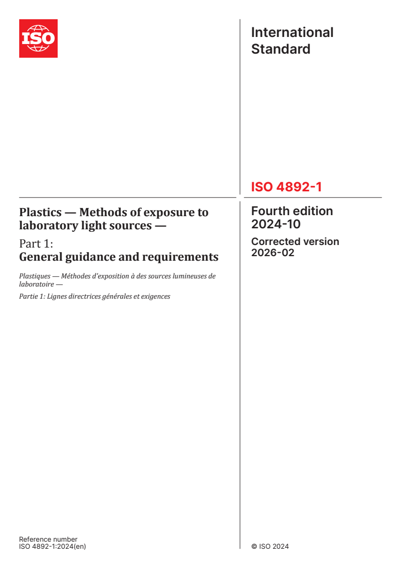 ISO 4892-1:2024 - Plastics — Methods of exposure to laboratory light sources — Part 1: General guidance and requirements