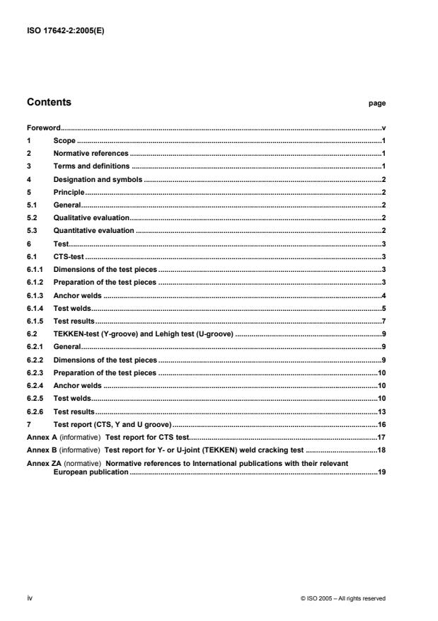 Keywords: ISO 17642-2:2005, cold cracking tests, self-restraint tests, CTS test, Tekken Y‑groove, Lehigh U‑groove, weldability, arc welding, C‑Mn steels, low‑alloy steels.