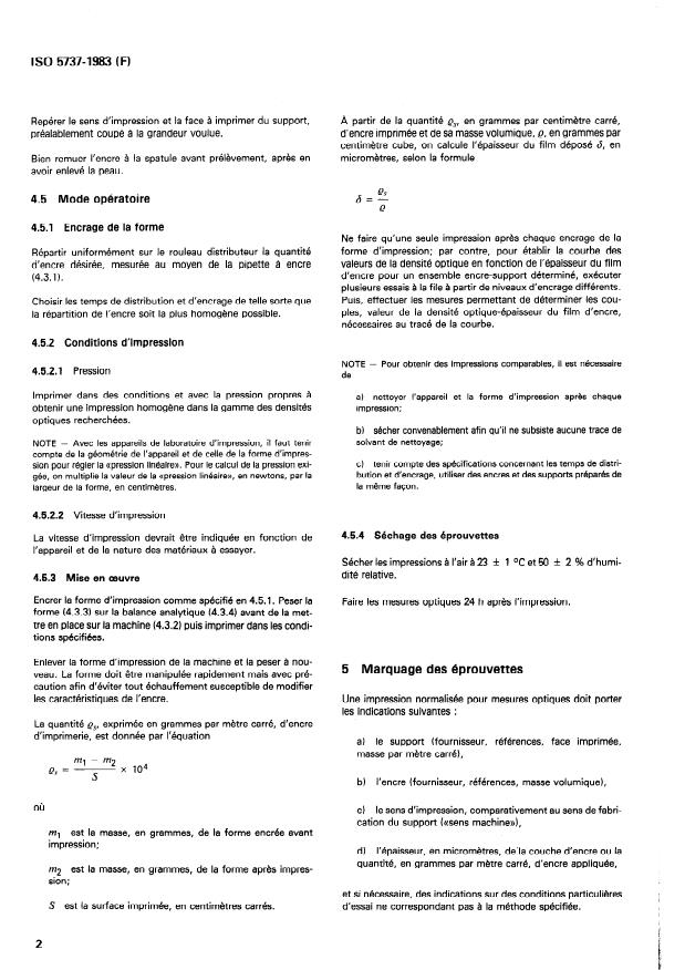 Ces éprouvettes, appelées ((impressions normalisées)) et obte- l’encre à vitesse et pression constantes.