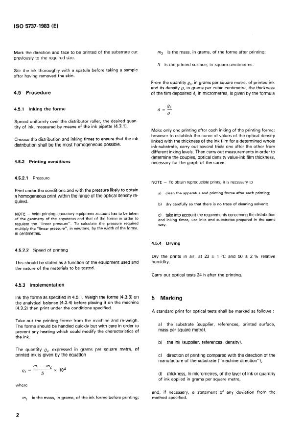 ISO 5737:1983 is a standard published by the International Organization for Standardization (ISO). Its full title is "Prints — Preparation of standard prints for optical tests". This standard covers: Is in technical conformity with CEI specification 14-74 of European Comittee of the Paints, Printing Inks and Artists' Inks Manufacturers' Associations. The standard prints are subjected to colorimetric optical density and brightness tests. This standard applies only to typographic and offset prints.