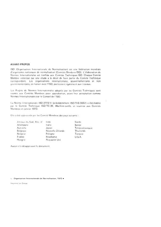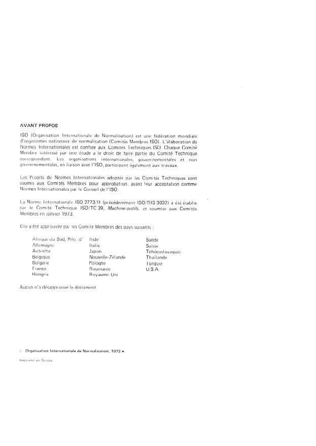 par le Comite Technique ISO/TC 39, Machine-outils, et soumise aux Comités