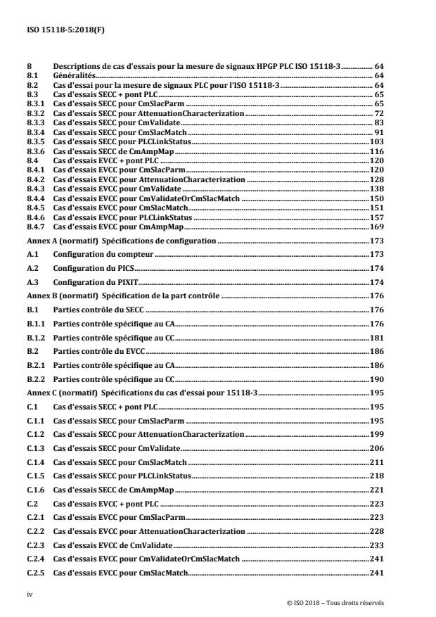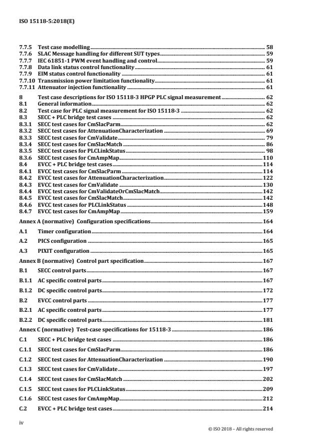 ISO 15118-5:2018 defines conformance testing for the physical layer (Layer 1) and data link layer (Layer 2) of the ISO 15118 vehicle-to-grid (V2G) communication interface. The standard specifies an Abstract Test Suite (ATS) and a test architecture for verifying implementations of an Electric Vehicle Communication Controller (EVCC) or a Supply Equipment Communication Controller (SECC) that use PLC-based High Level Communication (HLC) and Basic Signaling as defined in ISO 15118‑3. Test logic is specified using TTCN-3 Core Language for Layers 1 and 2.