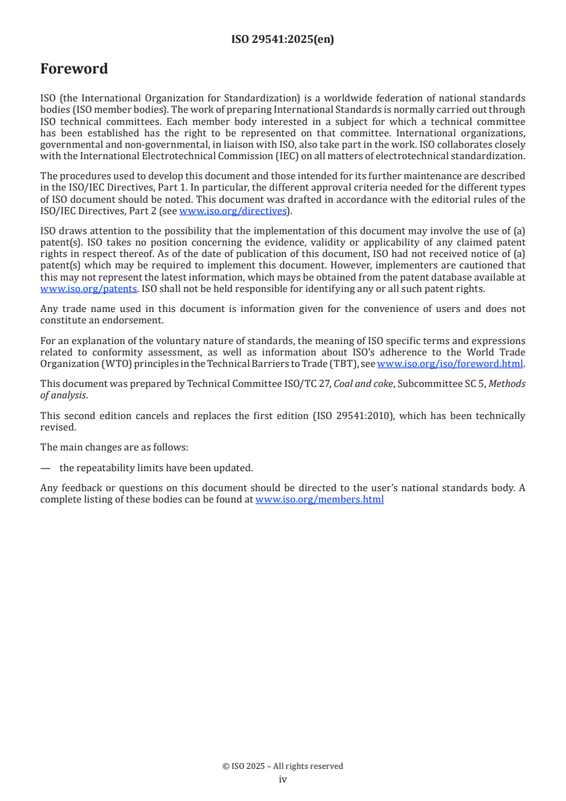 Keywords: ISO 29541:2025, coal and coke analysis, total carbon hydrogen nitrogen, instrumental combustion method, calibration, sample preparation, coal analysis, coke analysis, precision limits.
