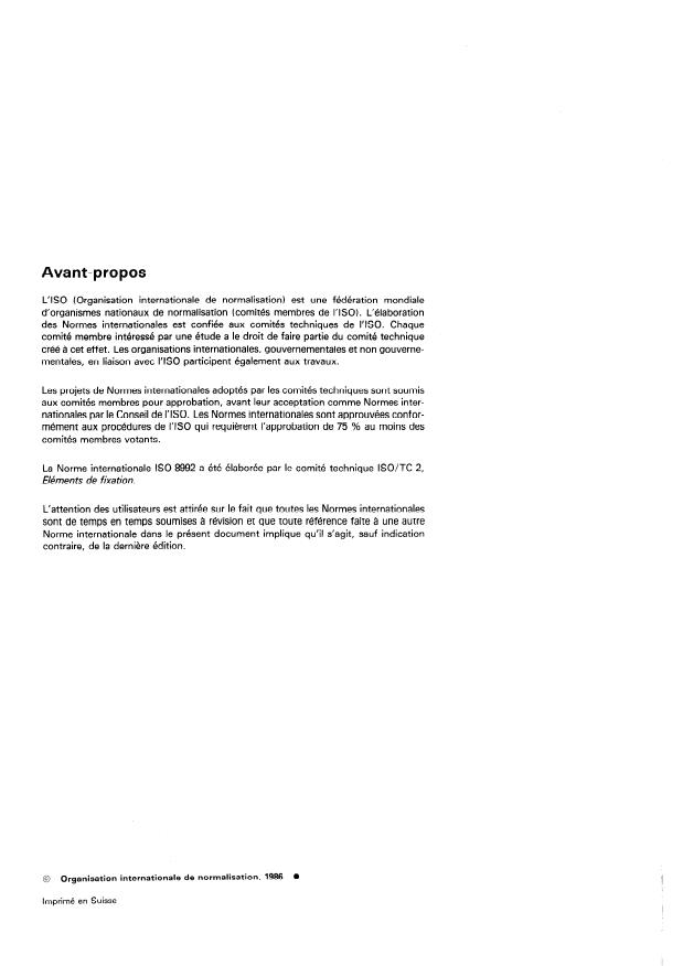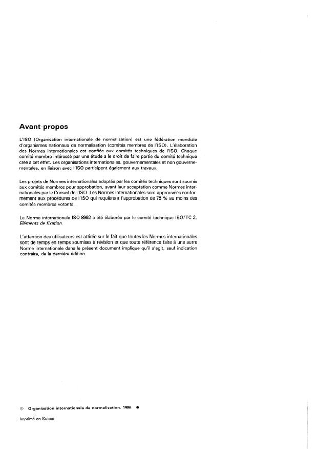 ISO 8992:1986 - Éléments de fixation -- Prescriptions générales relatives aux vis, goujons et écrous