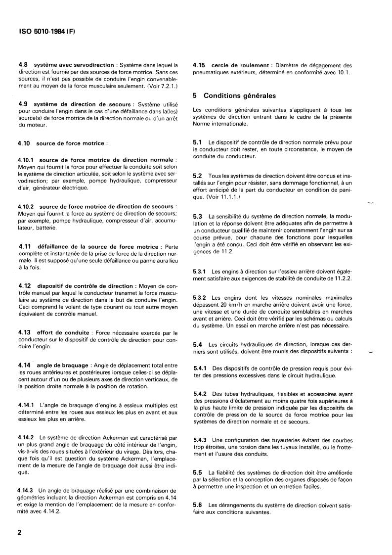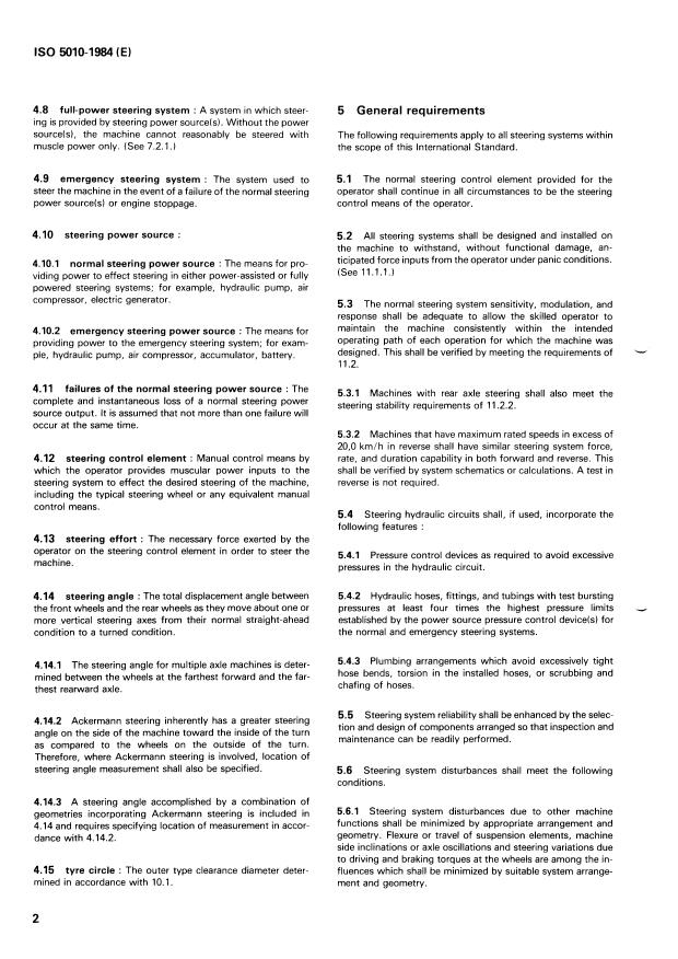 ISO 5010:1984 is a standard published by the International Organization for Standardization (ISO). Its full title is "Earth-moving machinery — Rubber-tyred machines — Steering capability". This standard covers: Earth-moving machinery — Rubber-tyred machines — Steering capability