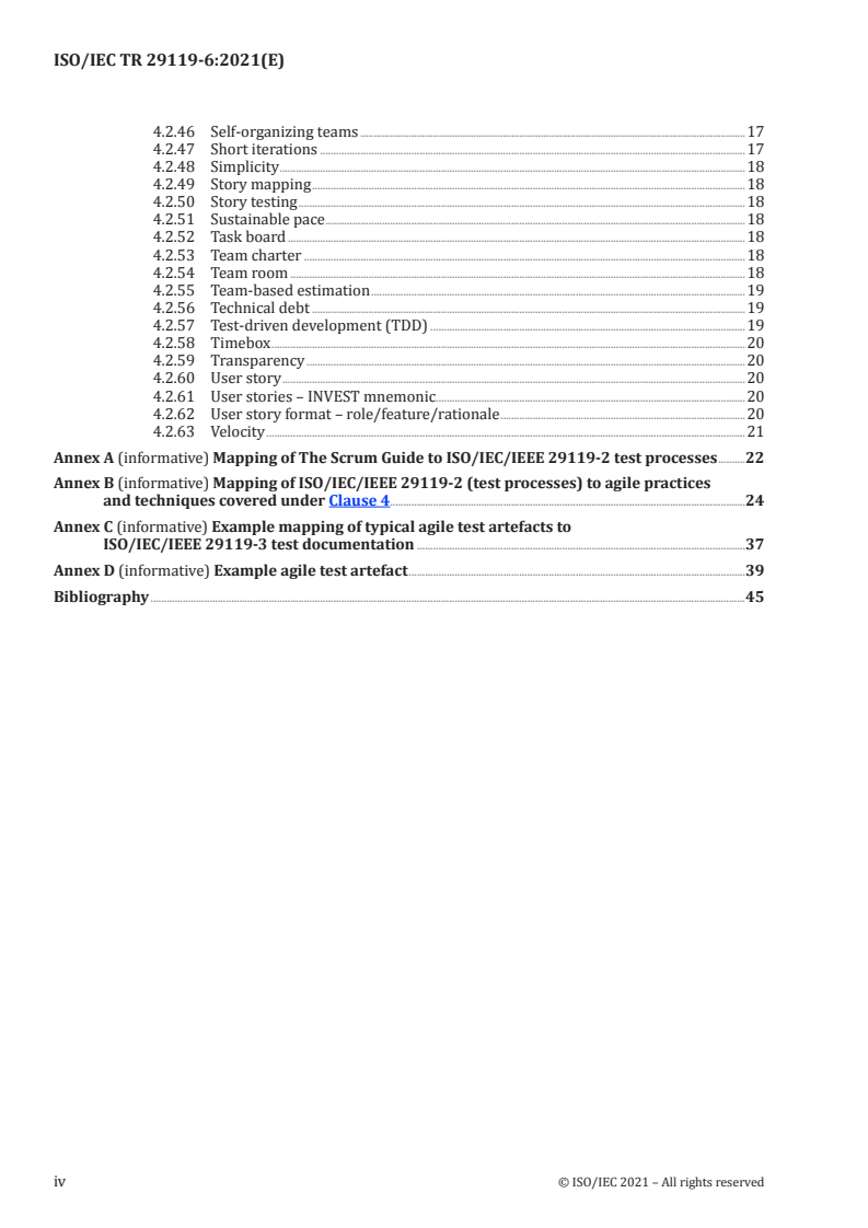 Keywords: ISO/IEC TR 29119-6:2021, software testing, agile testing, ISO/IEC/IEEE 29119, Scrum mapping, test processes, test documentation, continuous testing.