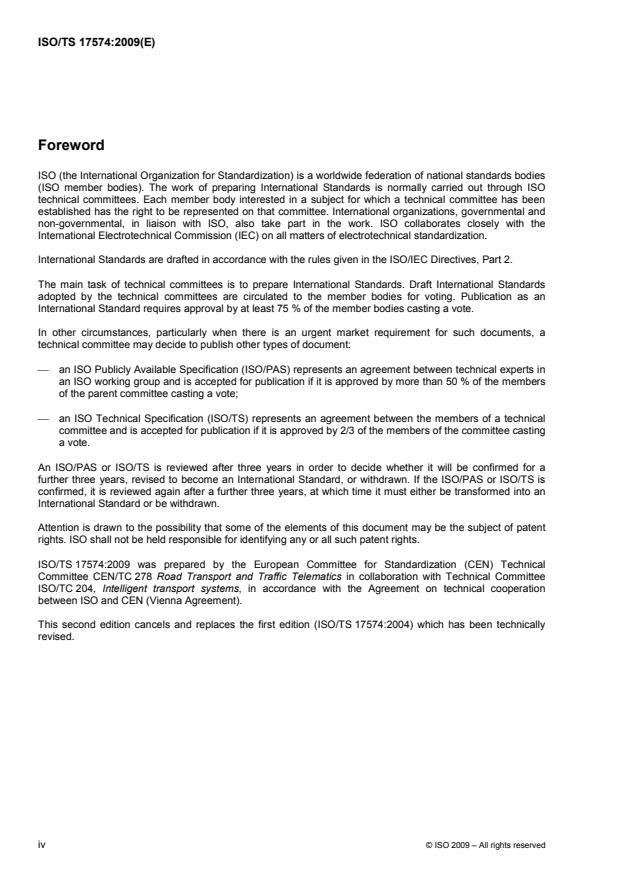 ISO/TS 17574:2009 is classified under the following ICS (International Classification for Standards) categories: 03.220.20 - Road transport; 35.240.60 - IT applications in transport. The ICS classification helps identify the subject area and facilitates finding related standards.