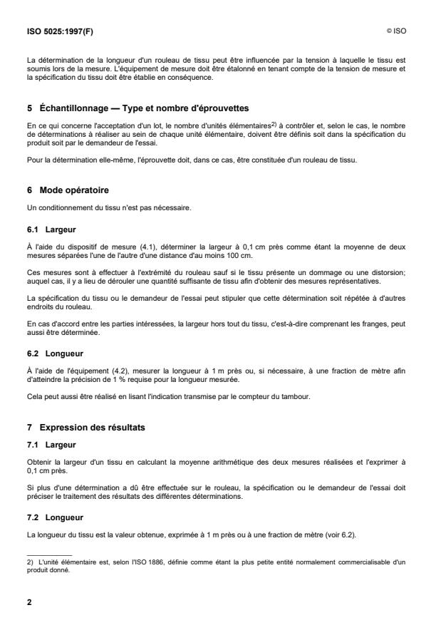 ISO 5025:1997 - Produits de renfort -- Tissus -- Détermination de la largeur (laize) et de la longueur