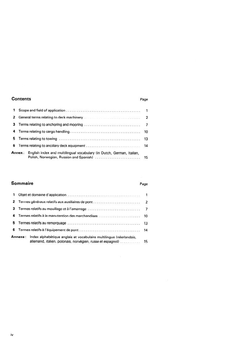 Defines general terms used in connection with this subject and includes specific terms associated with cargo handling, anchoring and mooring, towing and ancillary deck equipment. The annex contains an multilingual vocabulary.