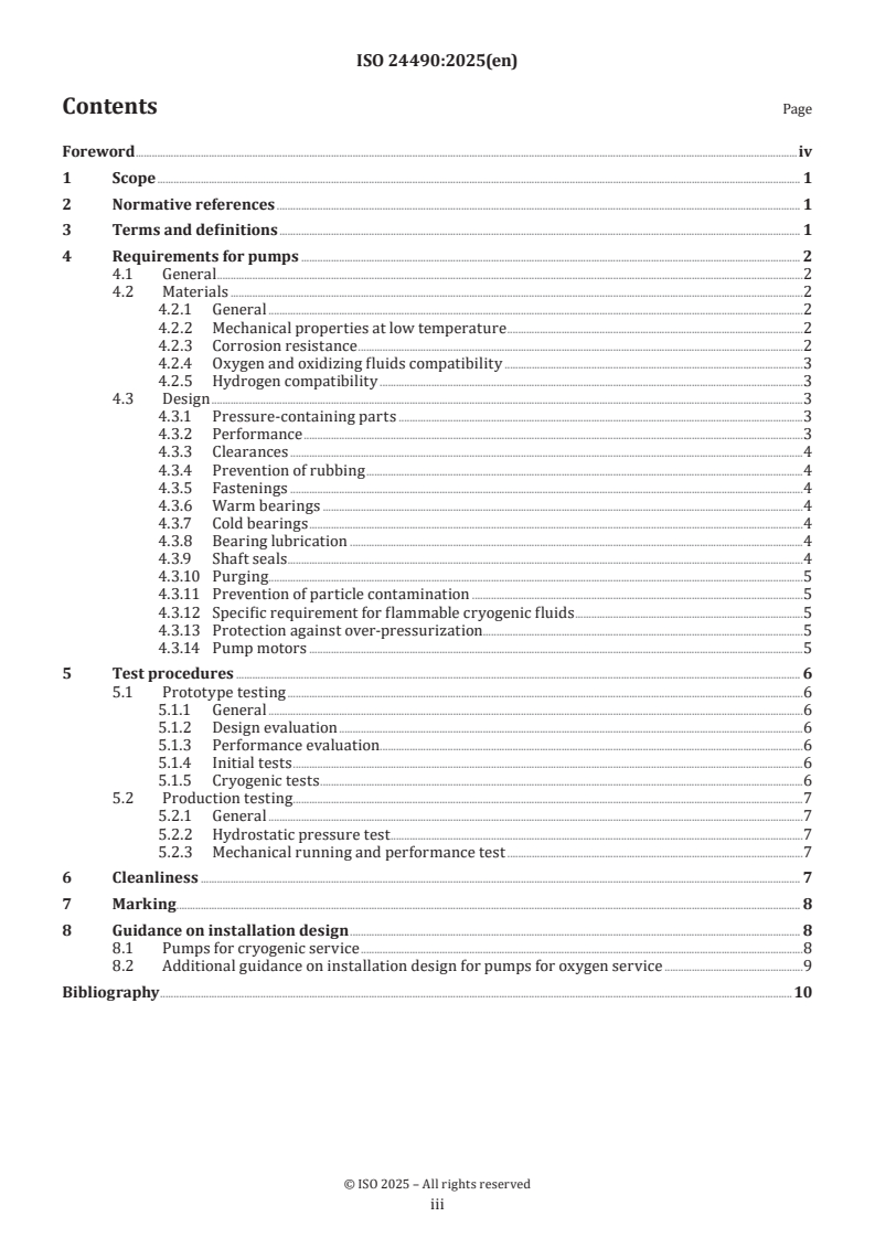 Keywords: ISO 24490:2025, cryogenic centrifugal pumps, cryogenic service, oxygen compatibility, hydrogen embrittlement, cryogenic pump testing, materials at low temperature, pump installation design.