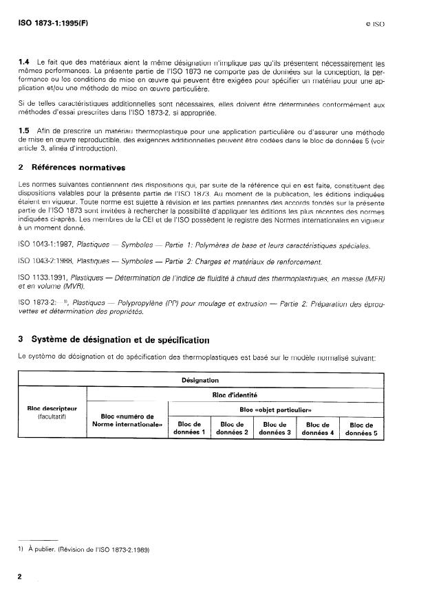 1.1 La présente partie de NS0 1873 établit un système de désignation des matériaux thermoplastiques à base