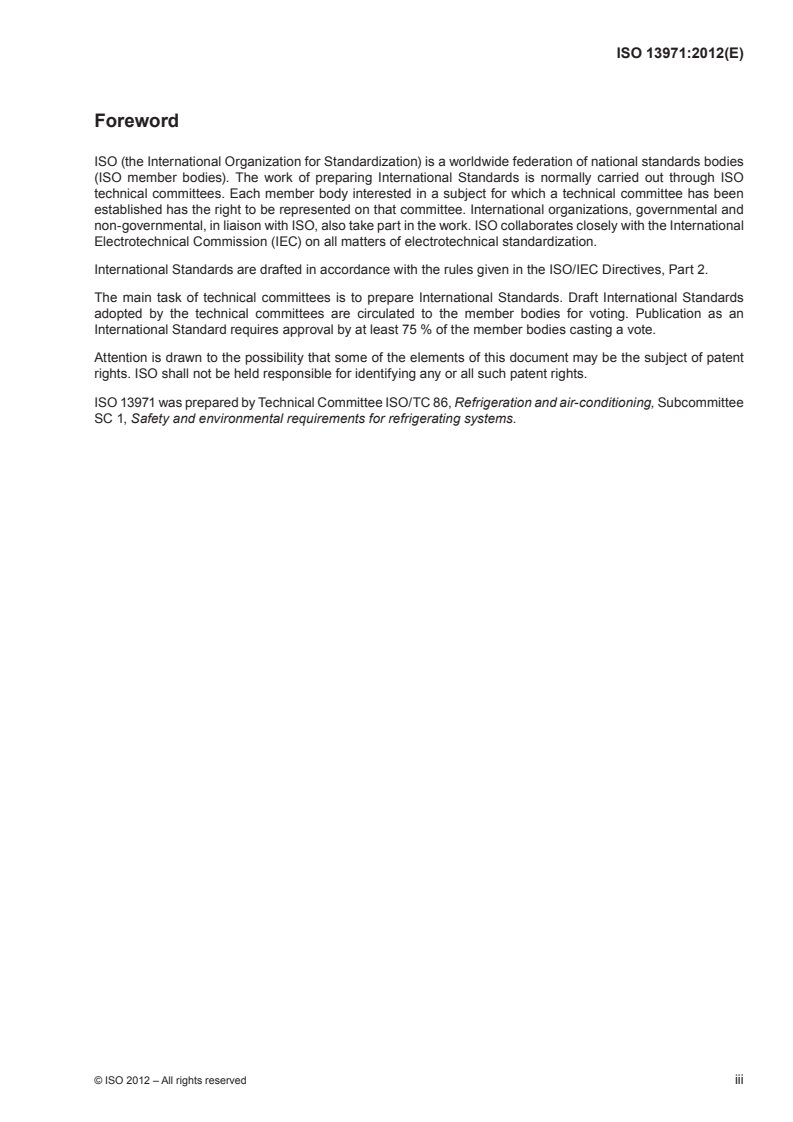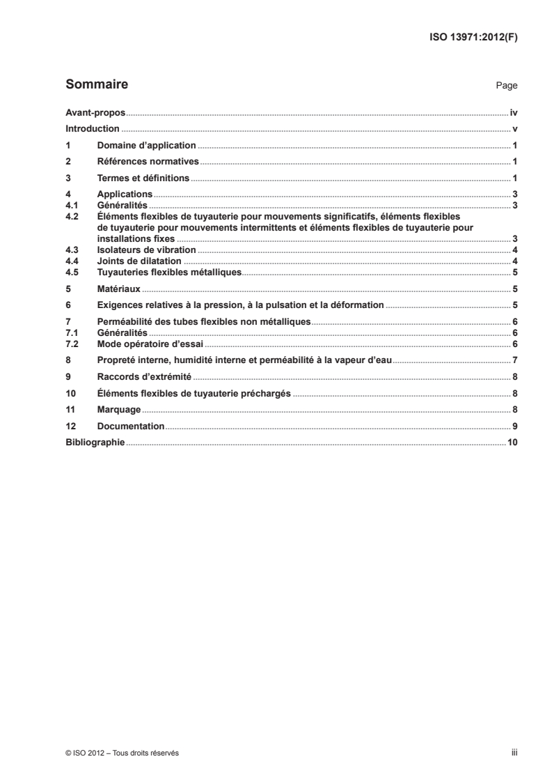 Keywords: ISO 13971, refrigeration systems, heat pumps, flexible pipe elements, vibration isolators, expansion joints, non‑metallic tubes, permeability, leak rate, HVAC/R standards.