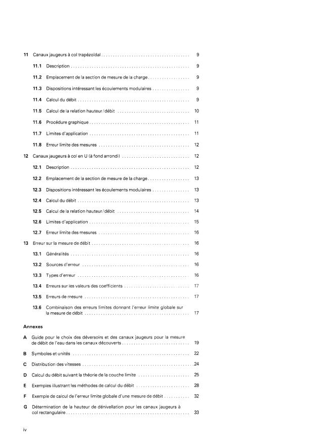 La présente Norme internationale traite de la mesure de débit dans les rivières et canaux artificiels à régime permanent ou à variation lente, au moyen de certains types de canaux jaugeurs à ressaut. Un grand nombre de canaux jaugeurs a été mis au point, mais la présente Norme internationale ne considère que ceux qui jouissent d'une reconnaissance unanime s'appuyant sur des travaux de recherche adéquats et des essais in situ, et n'ont par conséquent pas besoin d'être étalonnés sur place. Trois types de canaux jaugeurs couvrant une grande gamme d'utilisations sont recommandés, à savoir : a) les canaux jaugeurs à col rectangulaire ; b) les canaux jaugeurs à col trapézoïdal ; c) les canaux jaugeurs à col en U, c'est-à-dire à fond arrondi . Les conditions d'écoulement considérées ne dépendent que de la hauteur de charge amont ; il faut donc qu'il existe un écoulement tranquille (régime fluvial) en amont du can