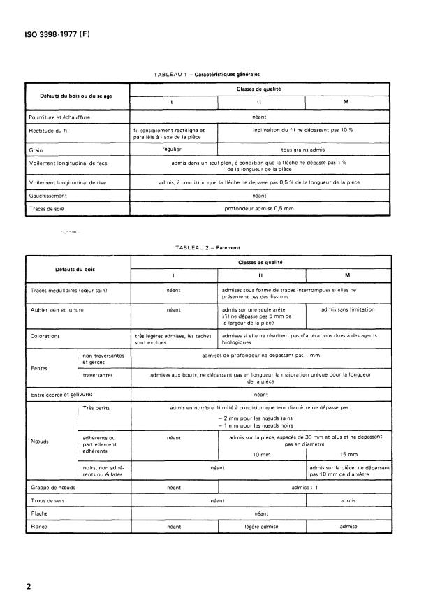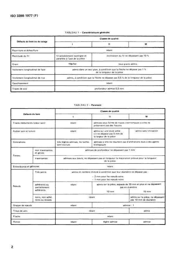 Divides the blocks used for manufacturing different types of parquets by quality into the three grades I, II, and M corresponding to the conditions stated in the tables. Grade M is mainly intended for manufacturing mosaic parquet. The regulations for manufacture, characteristics and delivery conditions are fixed by ISO 3397.