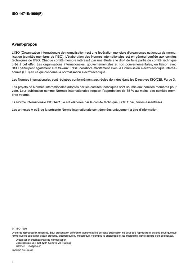 La Norme internationale ISO 14715 a été élaborée par le comité technique ISO/TC 54, Huiles essentielles.