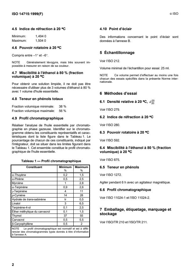 ISO 14715:1999 - Huile essentielle de thym a thymol, type Espagne (Thymus zygis (Loefl.) L.)