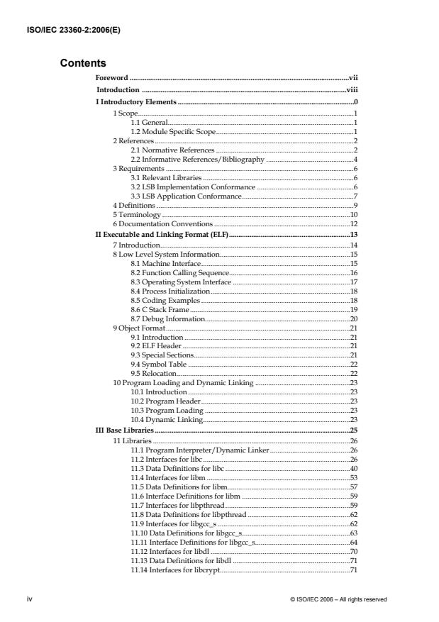 ISO/IEC 23360-2:2006 is the IA32 architecture-specific Core part of the Linux Standard Base (LSB). It supplements the generic LSB Core module with those interfaces that differ between architectures. Interfaces described in ISO/IEC 23360-2:2006 are mandatory except where explicitly listed otherwise. Core interfaces may be supplemented by other modules; all modules are built upon the core, ISO/IEC 23360-1:2006.