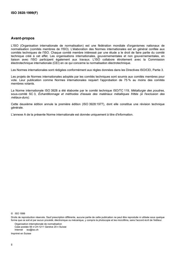 La Norme internationale ISO 3928 a été élaborée par le comité technique ISO/TC 119, Métallurgie des poudres,