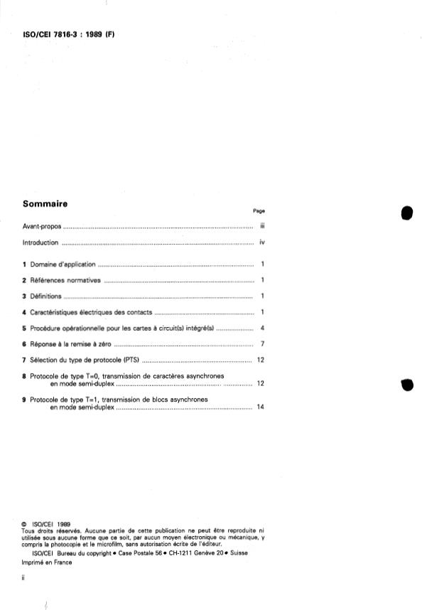 ISO/IEC 7816-3:1989 - Cartes d'identification -- Cartes a circuit(s) intégré(s) a contacts