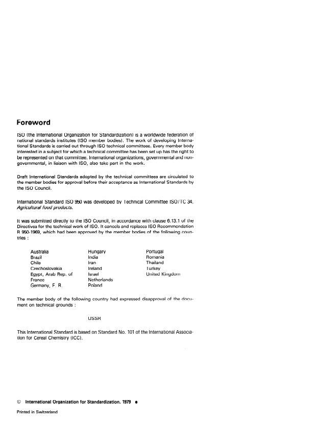 ISO 950:1979 is classified under the following ICS (International Classification for Standards) categories: 67.060 - Cereals, pulses and derived products. The ICS classification helps identify the subject area and facilitates finding related standards.