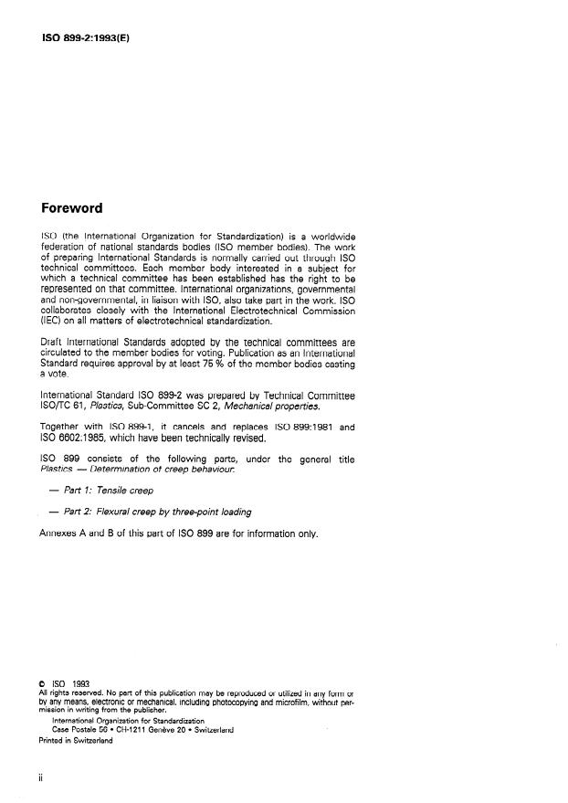 ISO 899-2:1993 - Plastics -- Determination of creep behaviour