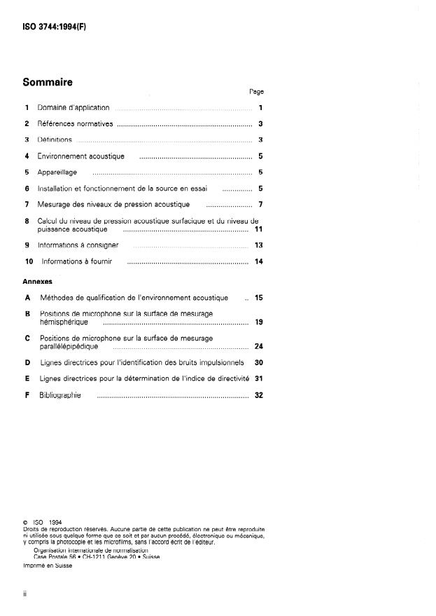 La présente Norme internationale prescrit une méthode de mesurage des niveaux de pression acoustique sur une surface entourant une source de bruit, dans des conditions approchant celles du champ libre au voisinage d'un ou de plusieurs plans réfléchissants, afin de calculer le niveau de puissance acoustique produit par la source. Elle définit des prescriptions relatives à l'environnement d'essai et à l'appareillage, ainsi que des techniques d'obtention du niveau de pression acoustique surfacique, à partir duquel est calculé le niveau de puissance acoustique de la source. Ces prescriptions et techniques correspondent à la classe 2 de précision. Il est important d'établir et d'utiliser conformément à la présente Norme internationale, des codes d'essai spécifiques aux différents types d'équipements. Ce sont ces codes d'essai acoustique qui spécifient les prescriptions détaillées relatives au montage, aux conditions de charge et de fonctionnement de l'équipement en essai, et précisent quelle surface de mesurage et quel maillage microphonique sont à adopter parmi ceux que prescr 344it la présente Norme internationale. NOTE 1 C'est en principe au code d'essai relatif à un type d'équipement particulier de donner des informations détaillées sur la surface de mesurage choisie. En effet, les résultats obtenus pour le niveau de puissance acoustique peuvent varier suivant la forme de surface utilisée.