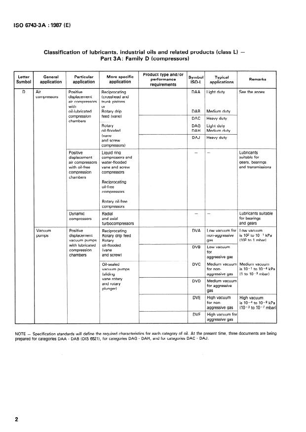 Lubricants, industrial oils and related products (class L) — Classification — Part 3A: Family D (Compressors)