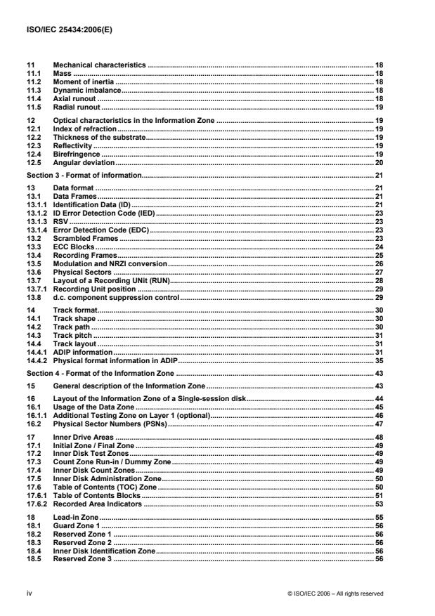 ISO/IEC 25434:2006 is a standard published by the International Organization for Standardization (ISO). Its full title is "Data interchange on 120 mm and 80 mm Optical Disk using +R DL Format — Capacity: 8,55 and 2,66 Gbytes per Side (Recording speed 2,4x)". This standard covers: ISO/IEC 25434:2006 specifies the mechanical, physical and optical characteristics of 120 mm recordable optical disks with capacities of 8,55 Gbytes and 17,1 Gbytes. It specifies the quality of the recorded and unrecorded signals, the format of the data and the recording method, thereby allowing for information interchange by means of such disks. The data can be written once and read many times using a non-reversible method. These disks are identified as +R DL.