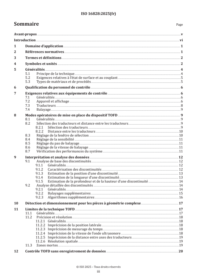 Keywords: ISO 16828:2025, TOFD, time‑of‑flight diffraction, ultrasonic testing, non‑destructive testing, NDT, weld testing, probe centre separation, discontinuity sizing.