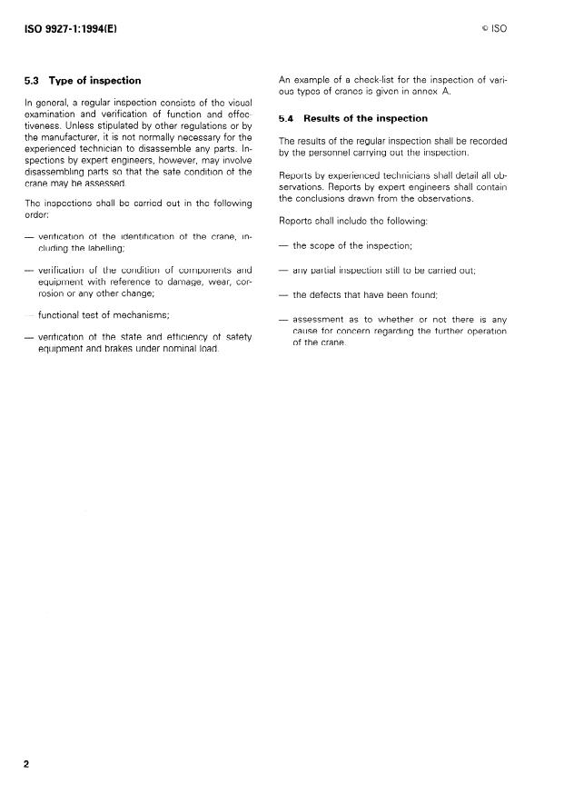 This part of IS0 9927 specifies the regular inspections