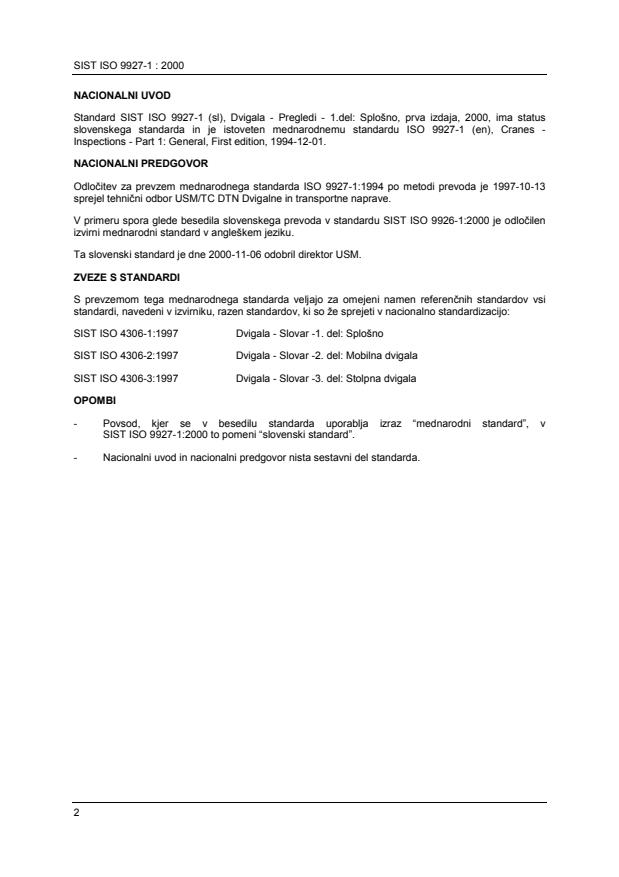 slovenskega standarda in je istoveten mednarodnemu standardu ISO 9927-1 (en), Cranes -